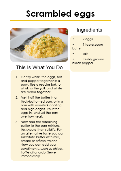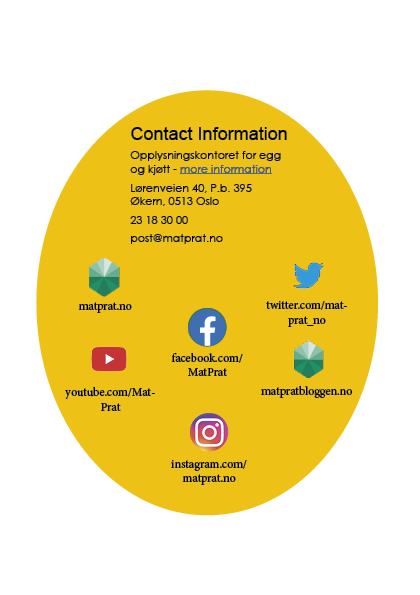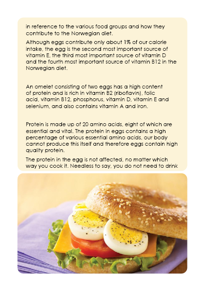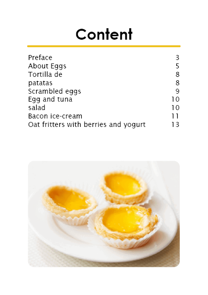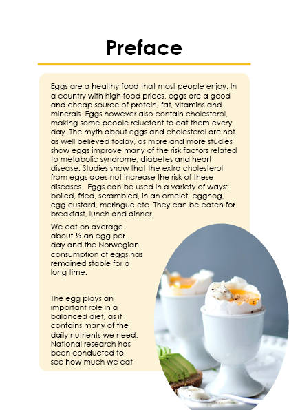 The booklet is themed after the shape and colours of an egg. White and warm yellow is the main