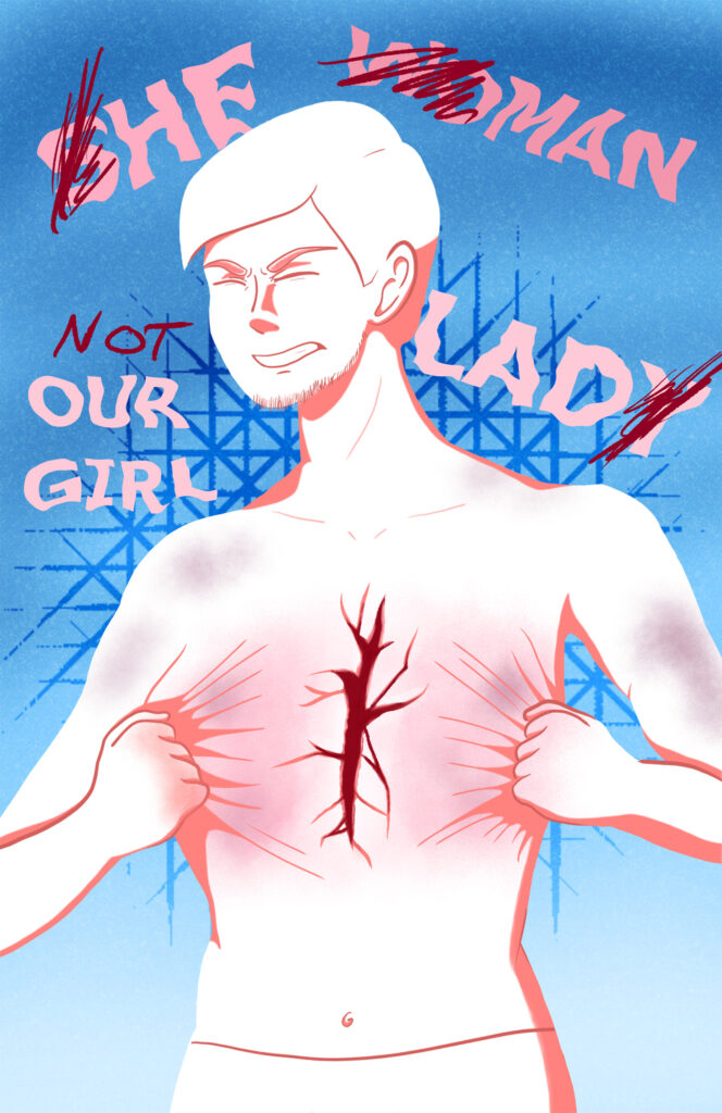 In this illustration I wanted to set focus on how damaging it can be for a transperson to be misgendered and not respected.